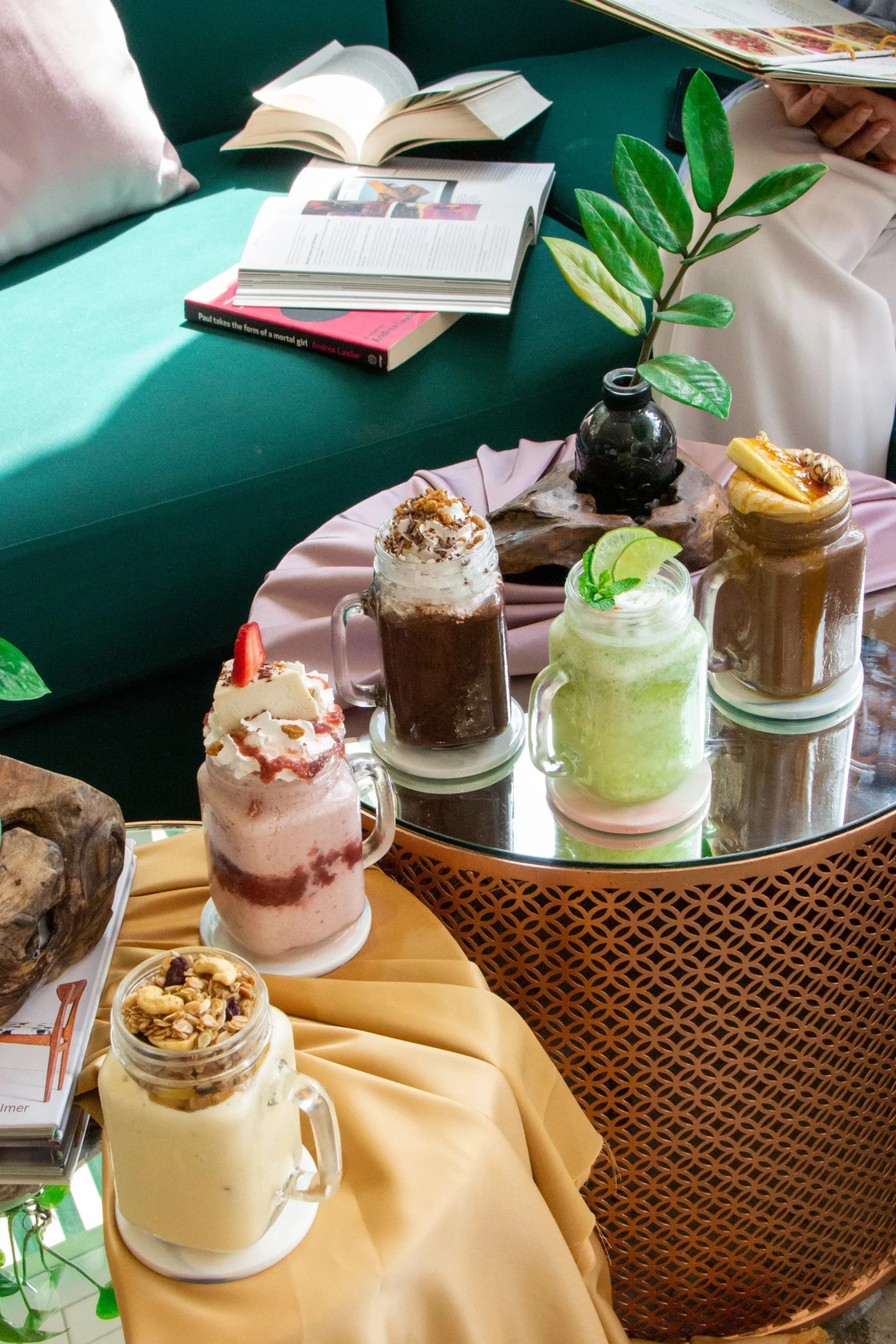 shakes, smoothie cups and fruit juice